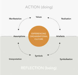 The Arts, organisational culture and identity: Materiality and meaning are elementary building blocks to experiencing and constructing of organisational culture. Die Künste, Organisationskultur und Identität: Materialität und Bedeutung sind elementare Bausteine für das Erleben und die Konstruktion von Organisationskultur und Identität.